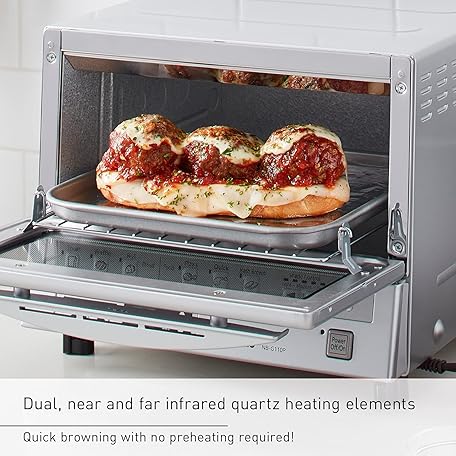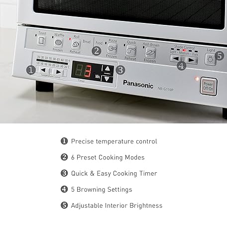 Thông tin sản phẩm Panasonic FlashXpress Toaster Oven Countertop, 4-Slice Compact Size with Double Infrared Heating, 6 Auto Cook Options and Precise Temperature Control, 1300W - NB-G110P (Silver)