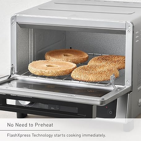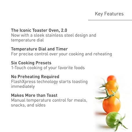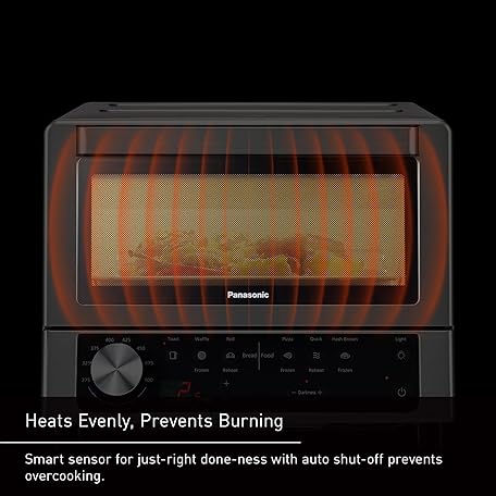 Thông tin sản phẩm Panasonic FlashXpress Toaster Oven Countertop, Compact 4 Slice Toaster Oven w/Double Infrared Heating, PFAS-free, 6 Auto Cook Options & Precise Temperature Control, 1300W - NB-G200P (Stainless Steel)