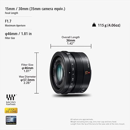 Thông tin sản phẩm Panasonic LUMIX G Leica DG SUMMILUX Lens, 15MM, F1.7 ASPH, Professional MIRRORLESS Micro Four Thirds, H-X015K (USA Black)