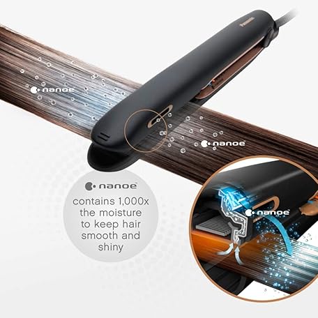 Thông tin sản phẩm Panasonic nanoe Flat Iron for Healthy, Shiny Hair, Hair Styling Iron with Ceramic Plates and Intuitive Heat Technology, for Straightening, Smoothing and Curling - EH-HS99-K (Black/Rose Gold)