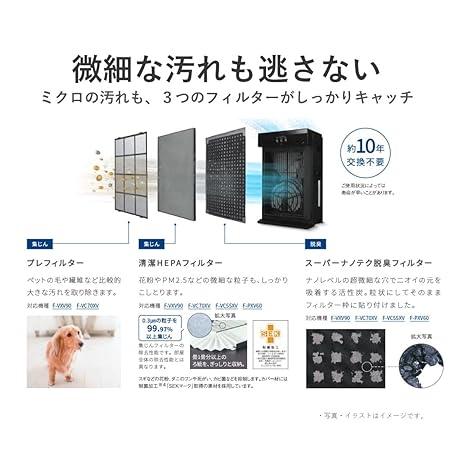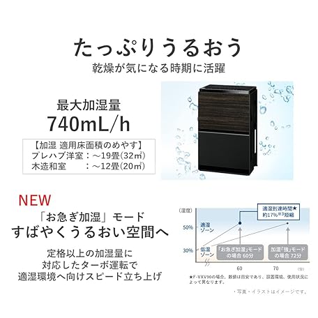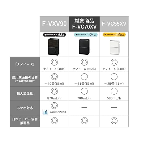Thông tin sản phẩm Panasonic Nanoe X F-VC70XV-K Humidifier Air Purifier, 9.6 Trillion, Equipped with Eco Navi 3D Flow Pollen Repellent, Powerful Suction of Pollen, Up to 31 Tatami Mats, Black