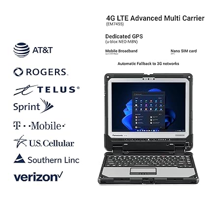 Panasonic Toughbook 33 MK1, Rugged 2-in-1, Core i5-7300U up to 3.5GHz, 12-inch QHD Touchscreen + Digitizer, 16GB RAM, 512GB SSD, 4G LTE, dGPS, Barcode Reader, Windows 11 Pro (Renewed)
