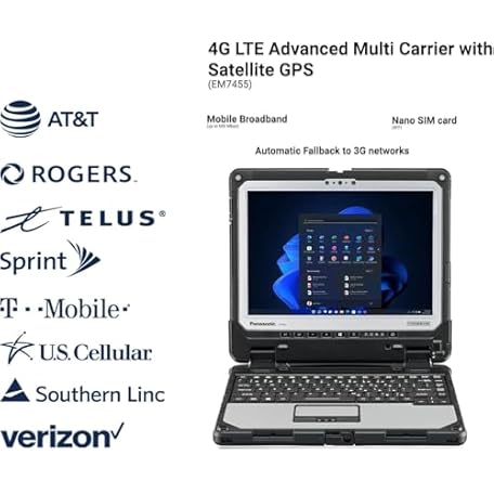 Panasonic Toughbook CF-33 MK1, Rugged 2-in-1, Intel Core i5-7300U up to 3.5GHz, 12-inch QHD Touchscreen + Digitizer, 16GB RAM, 256GB SSD, 4G LTE, Premium Keyboard, Windows 11 Pro, Silver (Renewed)