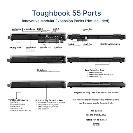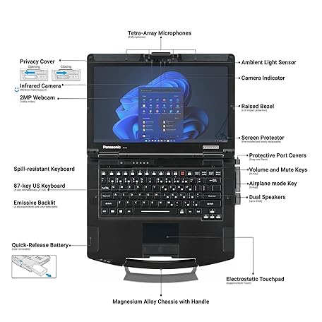 Panasonic Toughbook FZ-55 MK1, 14-inch HD 1366x768 Non-Touch Display Intel Core i5-8365U up to 4.1GHz, 32GB RAM, 1TB SSD, 4G LTE, Webcam, Windows 11 Pro (Renewed)