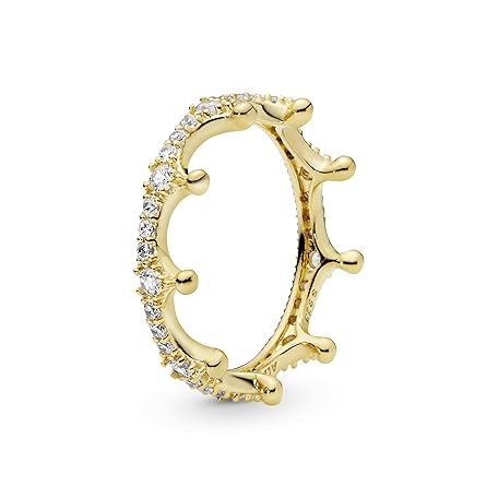 • PANDORA Clear Sparkling Crown Ring - Gift for Her - Stackable Gold Ring for Women - 14k Gold-Plated Shine with Cubic Zirconia - With Gift Box