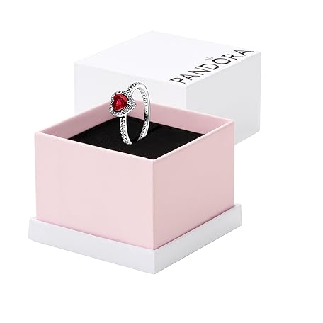 PANDORA Elevated Red Heart Ring - Sterling Silver Ring for Women - Layering or Stackable Ring with Red Crystal - Gift for Her With Gift Box