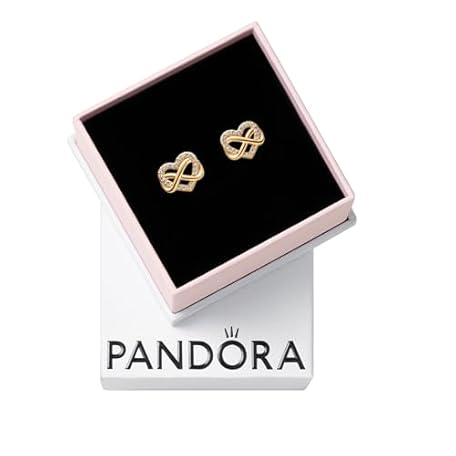 • PANDORA Moments Sparkling Infinity Heart Stud Earrings - 14K Gold-Plated Earrings with Cubic Zirconia - Jewelry for Women - Includes Gift Box