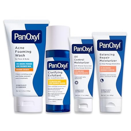 Thông tin sản phẩm PanOxyl Complete Cleanse, Manage & Moisturize Bundle - Acne Foaming Wash Benzoyl Peroxide 10%, PM Balancing Repair Moisturizer, AM Oil Control Moisturizer & Clarifying Exfoliant with 2% Salicylic Acid