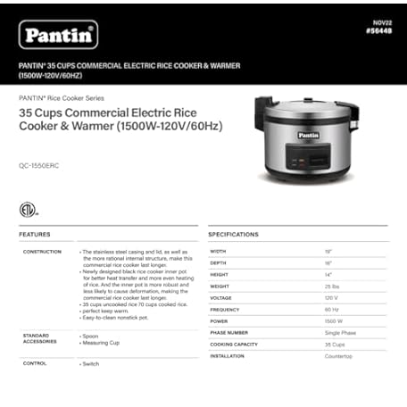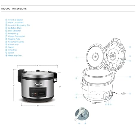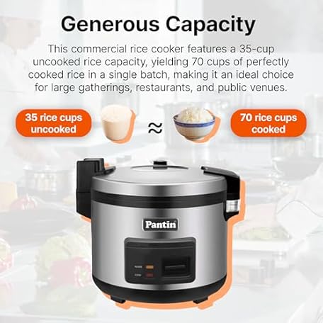 Thông tin sản phẩm PANTIN Commercial Rice Cooker & Warmer - 35 Cups Uncooked / 70 Cups Cooked, Extra Large Capacity Rice Cooker with Nonstick Inner Pot & Switch Press, 120V/1500W, ETL Listed