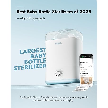 Thông tin sản phẩm Papablic Baby Bottle Sterilizer and Dryer Pro, Esterilizador De Biberones, Electric Steam Sterilizer for Baby Bottles, Pacifiers, and Pump Parts, Large Capacity 10 Bottles
