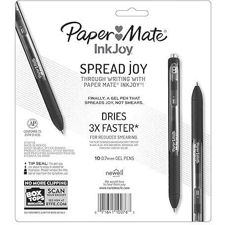 Sản phẩm Paper Mate InkJoy Black Gel Pens Medium Point (0.7 mm) Comfort Grip 10 Count Fast Dry Ink Ideal for Smooth Writing đang được bán với giá ưu đãi là $13.0473 tại nước Mỹ.