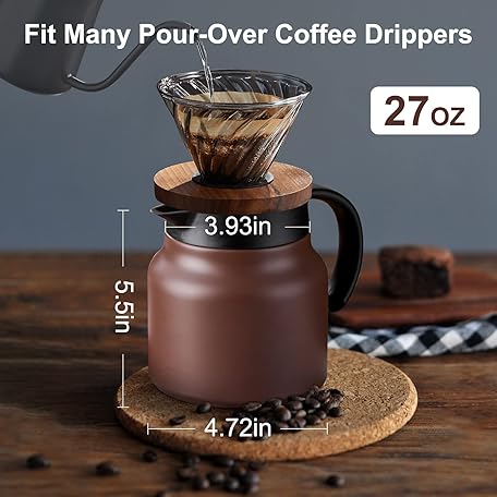 Thông tin sản phẩm PARACITY Thermal Coffee Carafe/Tea Pot with Ceramic Liner 27 OZ, Small Coffee Thermo Travel with Removable Stainless Steel Filter for Hot Drinks, Double Wall Insulated Coffee Pitcher