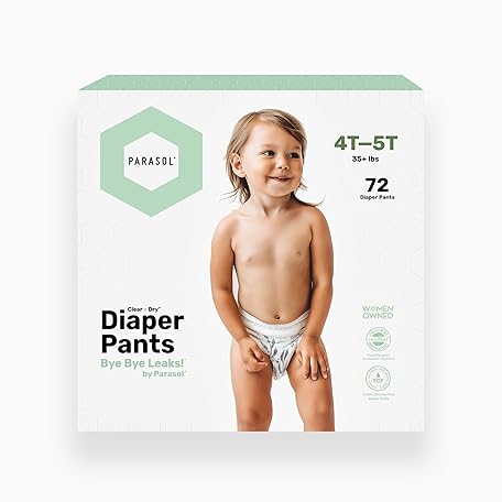 Sản phẩm Parasol Clear+Dry Natural Disposable Diaper Pants, RashShield Protection and Active 360 Comfort Wrap, Hypoallergenic Training Diapers, Size 6 (4T-5T), 72 Count đang được bán với giá ưu đãi là $78.48 tại nước Mỹ.