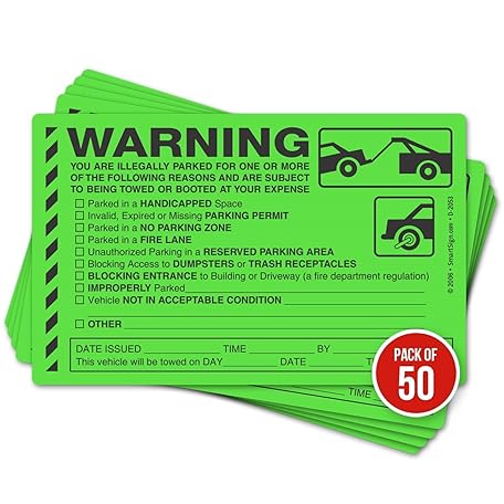 Sản phẩm Parking Violation Stickers For Enforcement of Illegal Parking Infractions / Very Hard To Remove and Super Sticky Permanent Adhesive (50 Pack) 8" x 5" đang được bán với giá ưu đãi là $24.5904 tại nước Mỹ.
