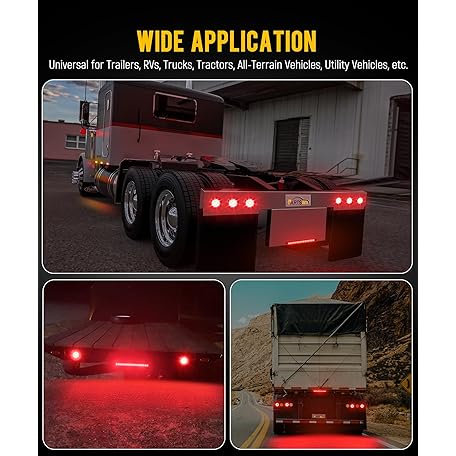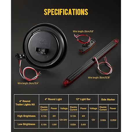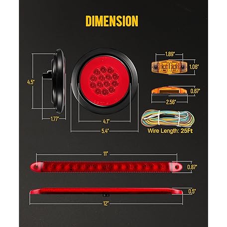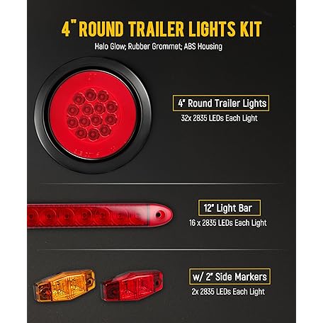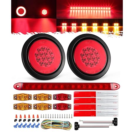 • Partsam 32LED Trailer Tail Lights Kit with 4" Round Halo Glow Light, 12" Light Bar, 2" Side Markers, Stop Turn Tail Lamps Rubber Grommet 3-Prong Wire Pigtails 24Ft Wiring Harness Included, 12V IP67
