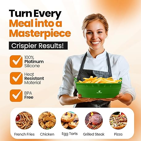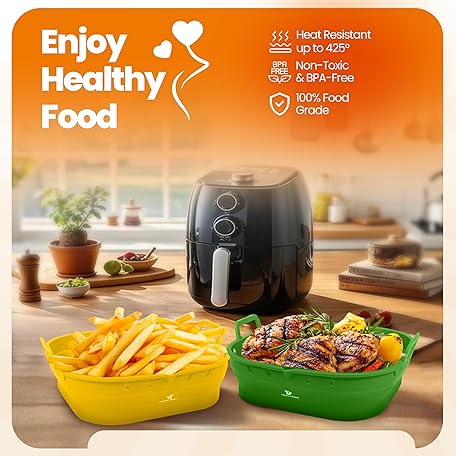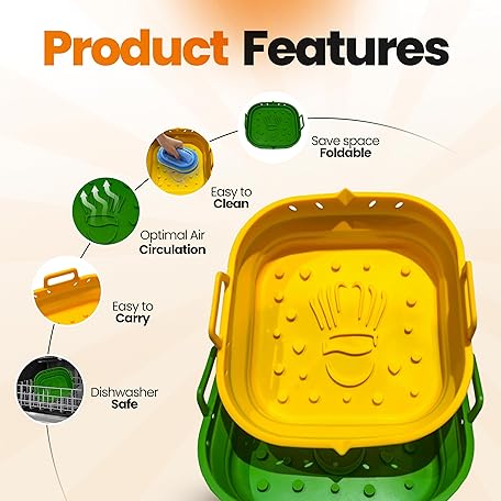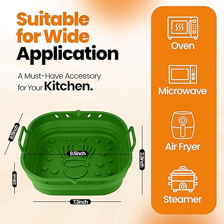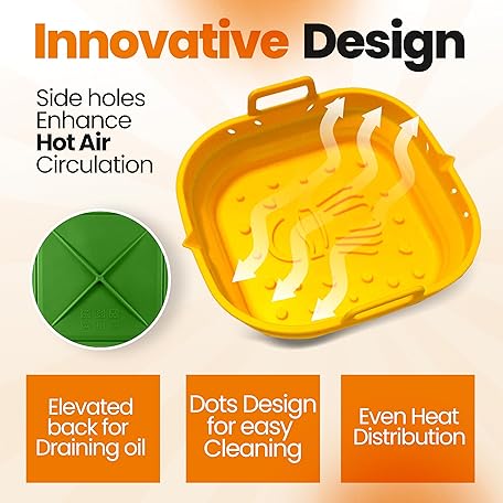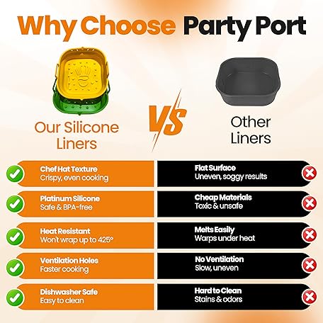 PARTY PORT Platinum Silicone Air Fryer Liners Reusable Square-Extra Strong-Easy to Clean Air Fryer basket for Oven Microwave Accessories - BPA Free - Food Safe Pot for 5.8QT to 8 QT - 9 Inch
