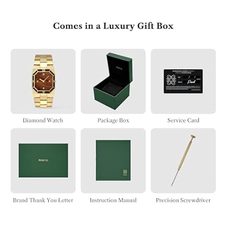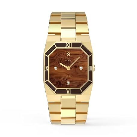 PASCAL Gold Octagonal Enamel Diamond Watch for Men Women Vintage Style Lab-Grown Diamonds & Sapphire Crystal 3 ATM- Gift for Him/Her