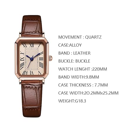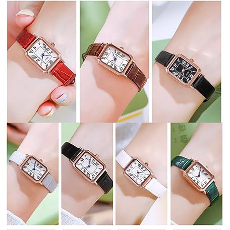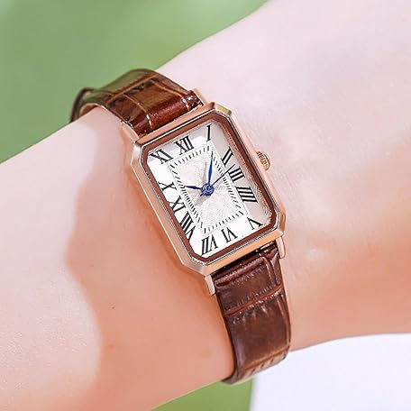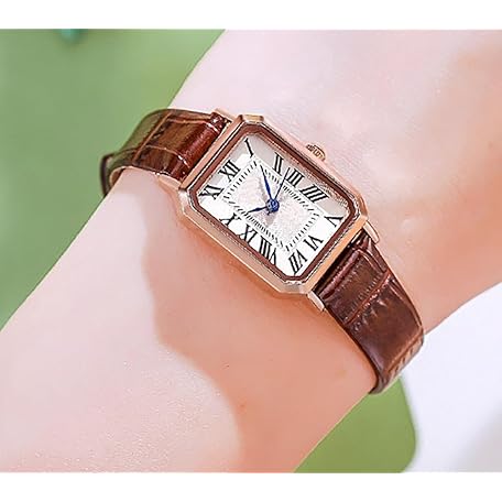 • PASOY Vintage Womens Watch Analog Quartz Waterproof Ladies Watches for Women with Leather Strap Square Dial