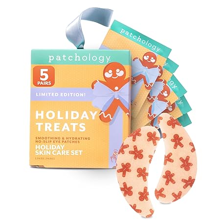 Patchology Holiday Treats Gingerbread Under Eye Patches Gift Set - Cute Stocking Stuffers with Gingerbread Scent - No-Slip Masks that Hydrate, Soothe and Refresh Skin - 5 Pair (Limited Edition)