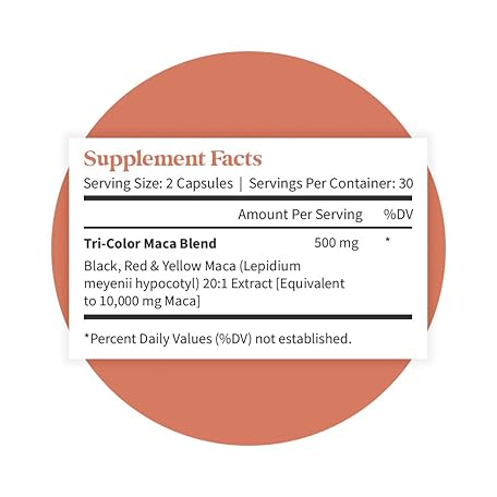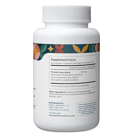 Thông tin sản phẩm Pattern Wellness Maca Root Extract 20:1 (10,000 mg Equivalent) – for Men & Women – Tri-Color Black/Red/Yellow Blend – 60 Vegan, Non-GMO Capsules