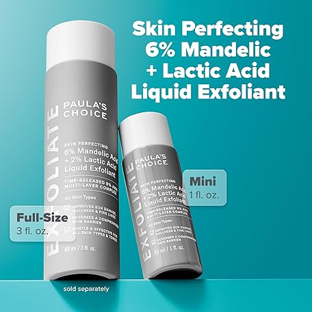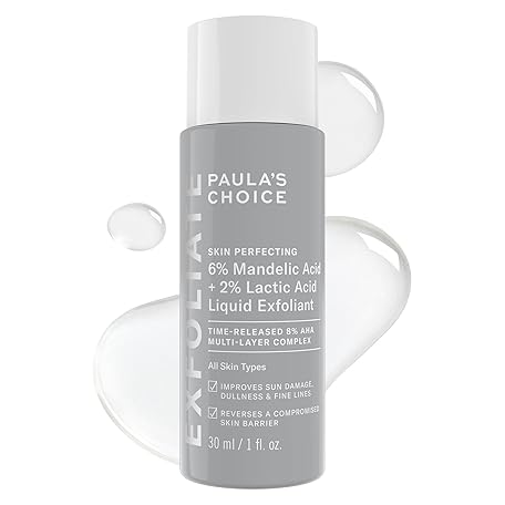 Thông tin sản phẩm Paula’s Choice 6% Mandelic Acid + 2% Lactic Acid Exfoliant, Gentle Daily AHA Exfoliation for Discoloration, Bumpy Texture & Radiance, for Sensitive Skin, Fragrance-Free