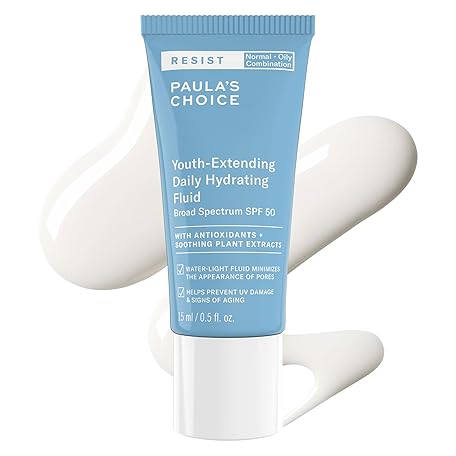 Paula's Choice RESIST Daily Hydrating Fluid Face Moisturizer with SPF 50 Sunscreen, Face Sunscreen for Oily Skin, Chamomile & Vitamin E, UVA/UVB Protection, Fragrance-Free, TSA Friendly