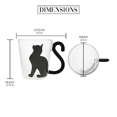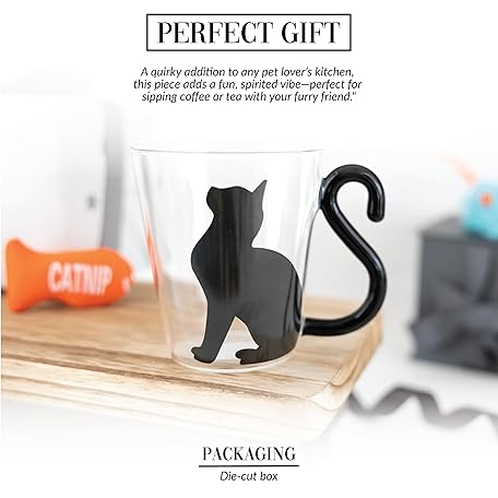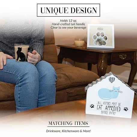 • Pavilion Gift Company - Cat - 12 oz Glass Coffee Mug Tea Cup Kitty Kitten Feline Cat Mom Dad Lover Present