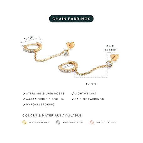 Sản phẩm PAVOI 14K Gold Chain Earrings for Women | Double Piercing Dangle Chain Huggie Hoop Earrings | Cubic Zirconia Pearl Stud Ear Cuff Earrings for Women đang được bán với giá ưu đãi là $14.1155 tại nước Mỹ.