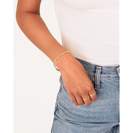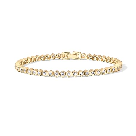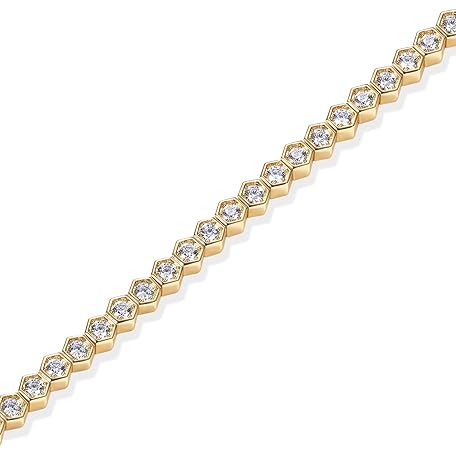 • PAVOI 14K Gold Plated 2mm Cubic Zirconia Honeycomb Tennis Bracelet | Gold Bracelet for Women | SizeS 6.5-7.5 Inch