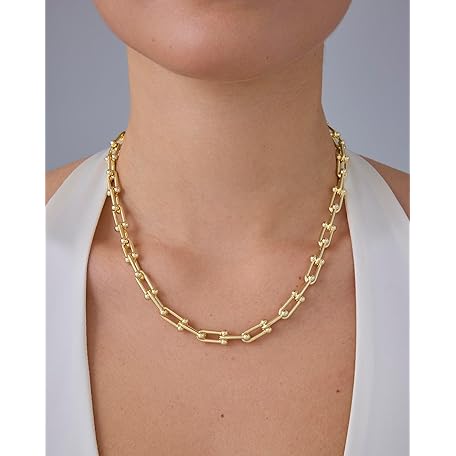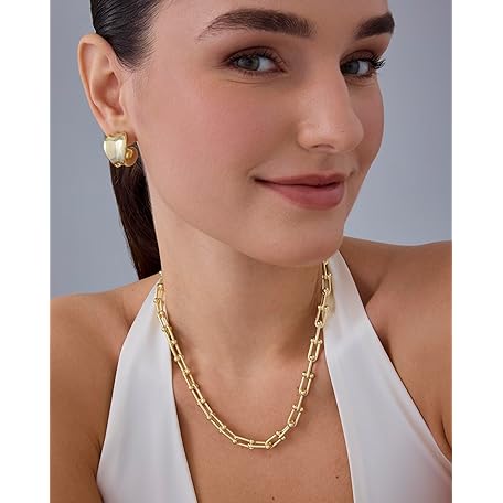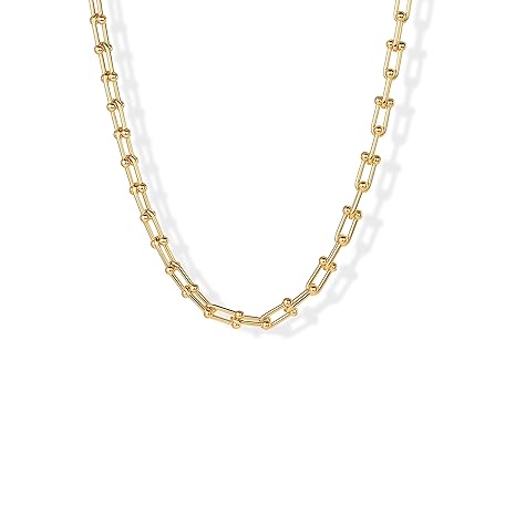 • PAVOI 14K Gold Plated Chunky Chain Choker Necklaces for Women | Gold Statement Graduated Link Chain Necklace | Bold Oval Link Barbell Links Paperclip Chains