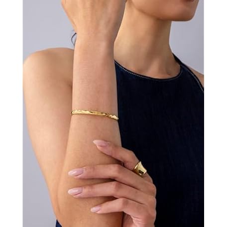 • PAVOI 14K Gold Plated Waterproof Bangle Bracelets for Women | Stainless Steel Faceted Hammered Ball Beaded Hinged Bracelet