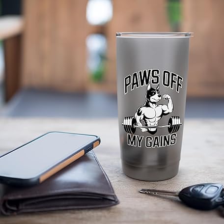 Sản phẩm Paws Off My Gains Muscular Dog Weightlifting Stainless Steel Insulated Tumbler đang được bán với giá ưu đãi là $22.8791 tại nước Mỹ.