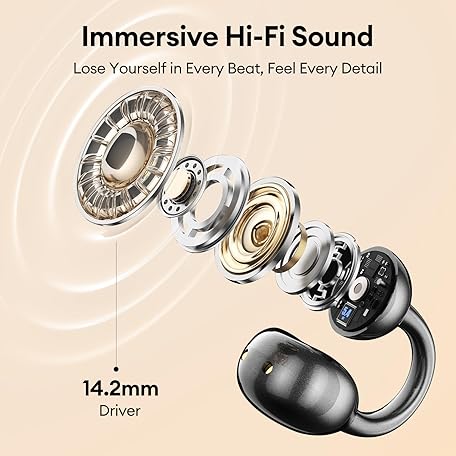 Thông tin sản phẩm PAXA M100 Clip On Ear Headphones, Open Ear Earbuds Wireless Bluetooth 5.4, Clip On Earbuds with LCD Touchscreen, Lightweight Comfort Open Ear Headphones for Sports, Fitness, and Workouts, Black