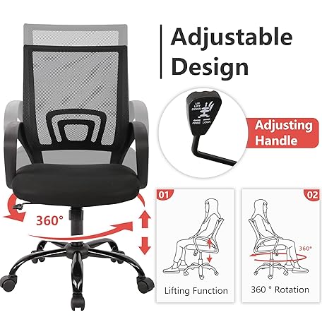 Sản phẩm PayLessHere Office Computer Chair Ergonomic Cheap Desk Chair Adjustable Comfortable Mid Back Task Rolling Swivel with Lumbar Support for Home Office (Pack of 1, Black) đang được bán với giá ưu đãi là $21.6692 tại nước Mỹ.