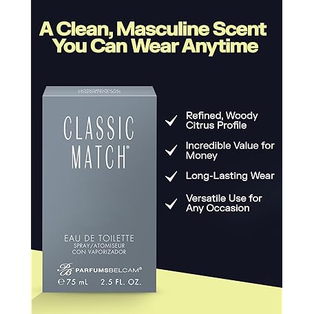 Thông tin sản phẩm PB ParfumsBelcam Classic Match CM Eau De Toilette Spray, Fresh and Elegant Fragrance for Men, Woody and Floral Notes, Long-Lasting Scent, Men’s Cologne for Everyday Wear, 2.5 Fl Oz