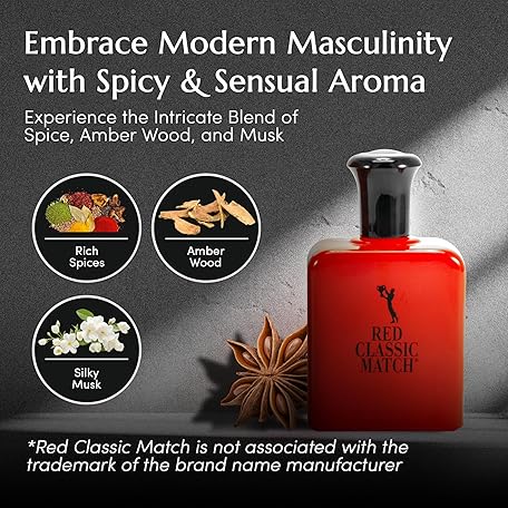 Thông tin sản phẩm PB ParfumsBelcam Red Classic Match Eau de Toilette - Spicy Woody Amber Fragrance for Men, Long-Lasting Masculine Scent, Affordable Cologne Alternative, Signature Fragrance - 2.54 Fl Oz
