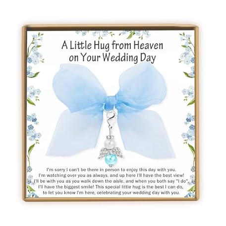• PEALICIOUS Something Blue Gift for Bride, Bridal Shower Wedding Gifts for Bride to Be Bridal Accessories Daisy Angel Bouquet Charms for Wedding Memory Memorial Gifts from Mom Dad Sister Friends