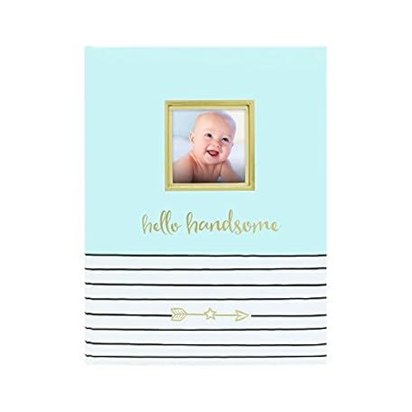 Pearhead Blue First 5 Years Keepsake Memory Book for Baby Boy, Record Every Milestone from Birth to Age 5, Journal Scrapbook Photo Album Hello Handsome