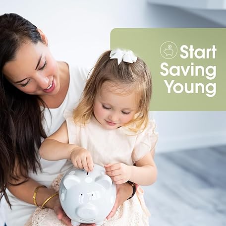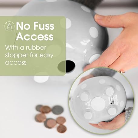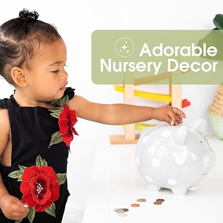 Pearhead Large Ceramic Piggy Bank, Gray with White Polka Dots, Ideal for Boys and Girls, Kids Money and Coin Bank, Perfect Baby Boy Nursery Décor, Great Gift and Newborn Keepsake