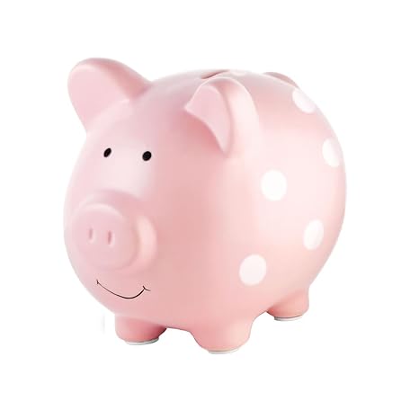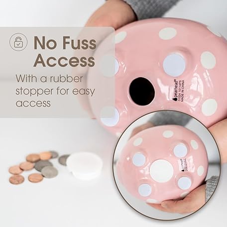 Thông tin sản phẩm Pearhead Large Ceramic Piggy Bank, Pink Polka Dots, Ideal for Boys and Girls, Kids Money and Coin Bank, Perfect Baby Girl Nursery Décor, Gift and Newborn Keepsake