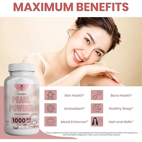 Sản phẩm Pearl Powder Supplement for Skin Health - Anti-Aging, Antioxidant & Collagen Production - Healthy Eyes, Hair & Nails, Supports Immunity, Mood and Sleep - With Calcium & Amino Acids 120 capsules 1000mg đang được bán với giá ưu đãi là $31.501 tại nước Mỹ.