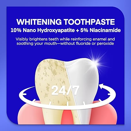 PearlSmile Niacinamide Hydroxyapatite Whitening Toothpaste – 10% Nano Hydroxyapatite + 5% Niacinamide – Strengthens Enamel, Remineralizes, Brightens Teeth – Fluoride-Free, Travel Size, 4.2oz (120g)