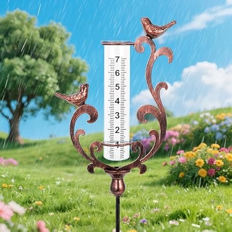 • pearlstar Rain Gauge Bird Copper Rain Gauges Outdoor with Large Numbers Plastic Tube for Yard Garden Patio Pathway Decor