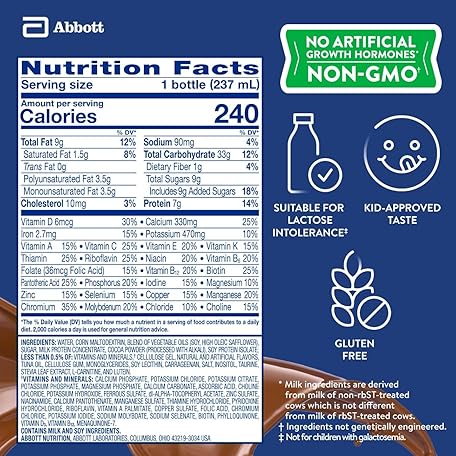 Thông tin sản phẩm PediaSure Grow & Gain with Immune Support, 27 Vitamins & Minerals for Kids, 7g Protein, Non-GMO, Gluten-Free, Chocolate, 8-fl-oz Bottle, Pack of 24