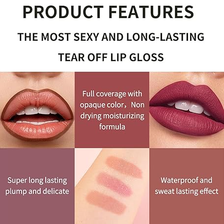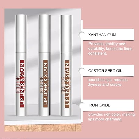 Peel Off Lip Stain Tattoo Set, 3 Colors Peel Off Lip Liner, Removable Lip Liner Set, Matte Finish Waterproof Lip Liner Pencil, Transfer-proof Peel Off Lip (3Colors/Set, B)