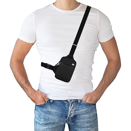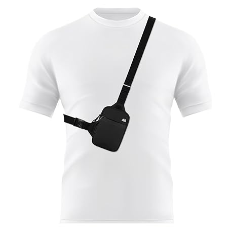 • Peicees Mini Crossbody Sling Bag Dual Pocket Water Resistant Running Phone Holder Chest Shoulder Bag for Men Women Travel Gym