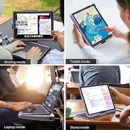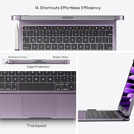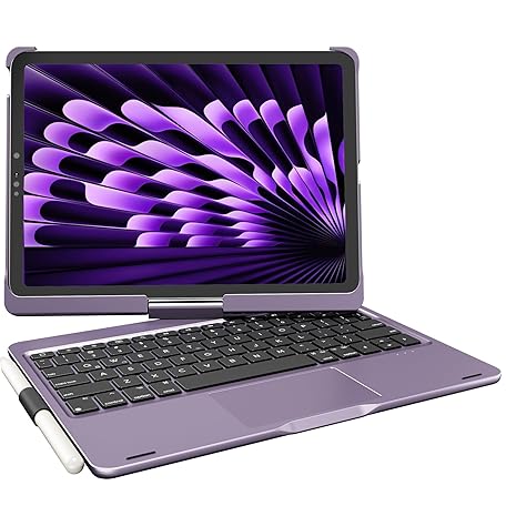 Thông tin sản phẩm pekarejue Wireless Keyboard Case for 2025 iPad (10th-11th a16) & iPad Air 11-inch (M3-M2)& iPad Air 10.9 (5th-4th) & iPad Pro 11 (2022-2018): Rotatable Pencil Holder Trackpad Backlit, Metallic Purple