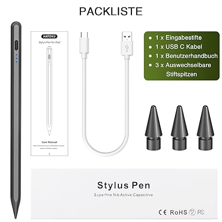 Thông tin sản phẩm Pen for iPad 2018-2025, HATOKU 15 Mins Fast Charging Pencil 1st Gen with Tilt & Palm Rejection Compatible with iPad Air 3/4/5/M2/M3, iPad mini 5/6/7, iPad 6/7/8/9/10/11, iPad Pro 11/12.9"/M4 M5(Black)
