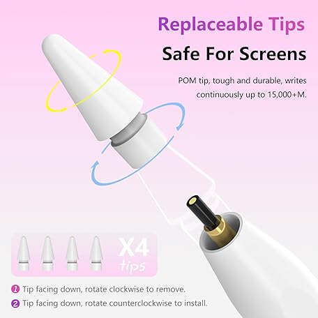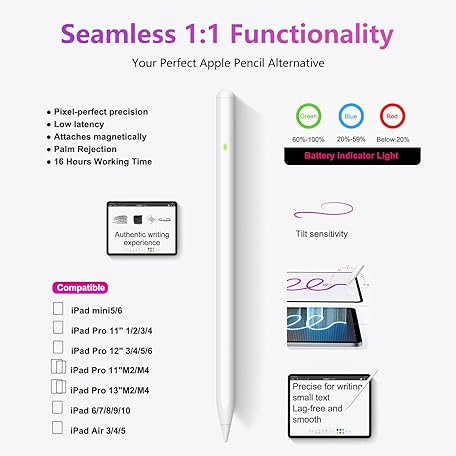 Pencil for Apple iPad 9th&10th Generation, Palm Rejection&Tilt Sensitivity with Apple Pencil 1st Generation, iPad Pencil for iPad 6/7/8/9/10, iPad Pro 12.9"/11"/13" M4, Air 5/4/3/11"-13" M2, Mini 6/5