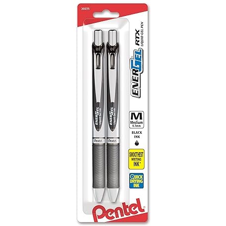 Thông tin sản phẩm Pentel EnerGel RTX Retractable Liquid Gel Pen, (0.7mm), Medium Line, Metal Tip, Black Ink, Pack of 2 (BL77BP2A)